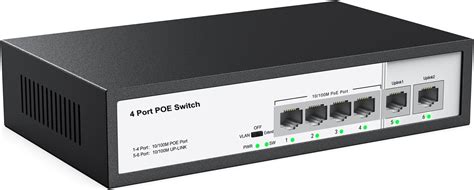walmart BV-Tech 6 Port PoE+ Switch (4 PoE+ Ports with 2 Ethernet Uplink and Extend Function) – 60W – 802.3at + 1 High Power PoE Port| Desktop Fanless Design | Sturdy Metal Housing